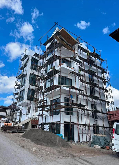 Obuhvatamo kompletnu realizaciju stambenih i poslovnih objekata po sistemu „ključ u ruke“, izvođenje svih vrsta građevinskih radova i pripremnih procesa, kao i adaptaciju i rekonstrukciju postojećih objekata.